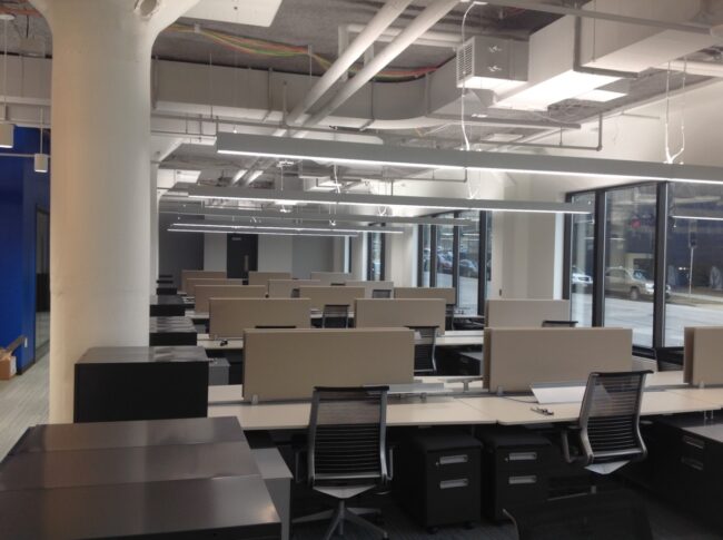 Johnson Controls | Innovation Center Dynamic provided the HVAC, plumbing, and fire protection design for the renovation of Building 1 at Johnson Controls. The project included a complete gut and remodel of the main lobby space in order to create a new customer experience for visitors. The remodeled lobby space is served by multiple VAV…