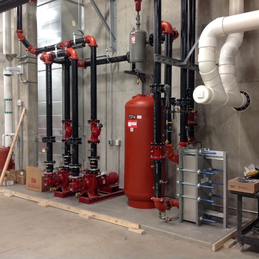 The Recreation Center for is served by two (2) new AHUs and several fan coil units. Hot water and chilled water piping for equipment was connected to the existing central utility plant which was designed by David Grassl at a former employer. The existing utility plant is over 500 feet from the new buildings with piping running through an existing parking structure. New pumps were added for both the chilled water and hot water systems with a new hot water heat exchanger to isolate the glycol for the hot water hydronic system required to feed the new buildings.