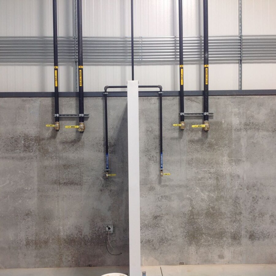 The building is also provided with a natural gas and propane piping distribution piping that is utilized for equipment testing and check-out prior to renting the equipment.